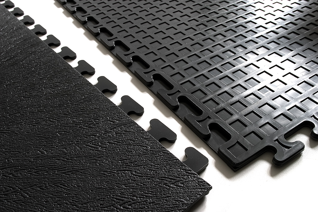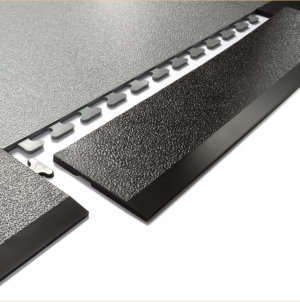 aus W-PVC-Recyclingmaterial, schwarz, Oberfläche glatt, Feder oder NutClip-Antrittplatte